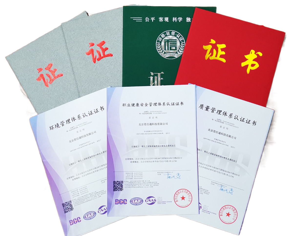 北京思信通科技有限公司目前总部位于北京市朝阳区,同时在北京昌平区设置了生产技术服务中心。为了满足日益扩大的试验装备生产规模需要以及加快公司分布式清洁能源技术装备的研发步伐,在浙江浦江科创园成立了浦江思兴通科技发展有限公司,专业从事各类试验装备的生产和反应安全风险评估装置技术。公司自成立之日起一直致力于向客户提供高质量试验装备产品以及整体解决方案,同时提供一流的技术支持与技术服务,公司同时致力于国内外知名技术公司的炼油化工、催化剂等技术产品的技术推广、代理、技术服务业务。公司先后获得北京市中关村高新技术企业、北京市高新技术企业认定证书,并通过了GB/T19001-2016质量管理体系认证、ISO45001:2018健康安全管理体系认证和GB/T24001-2016环境管理体系认证。